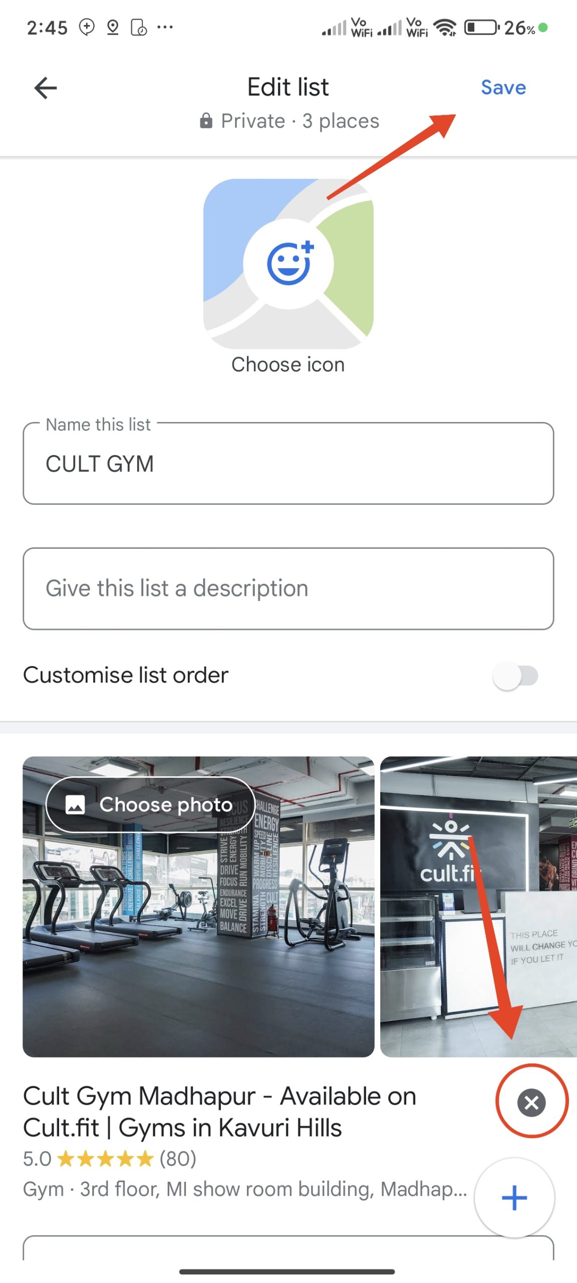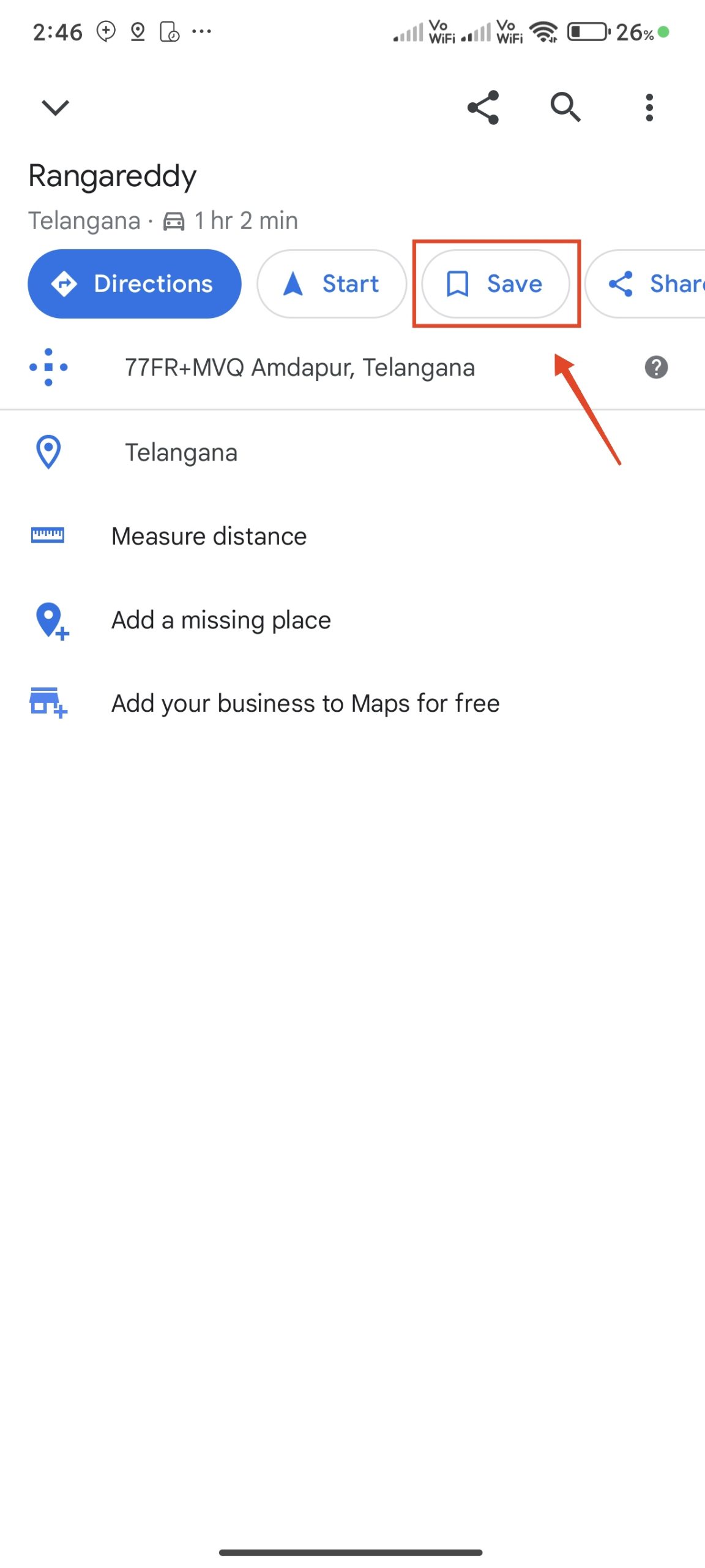5. Swipe up from the bottom or tap on the location name to reveal the entire card. Then, tap on Save.