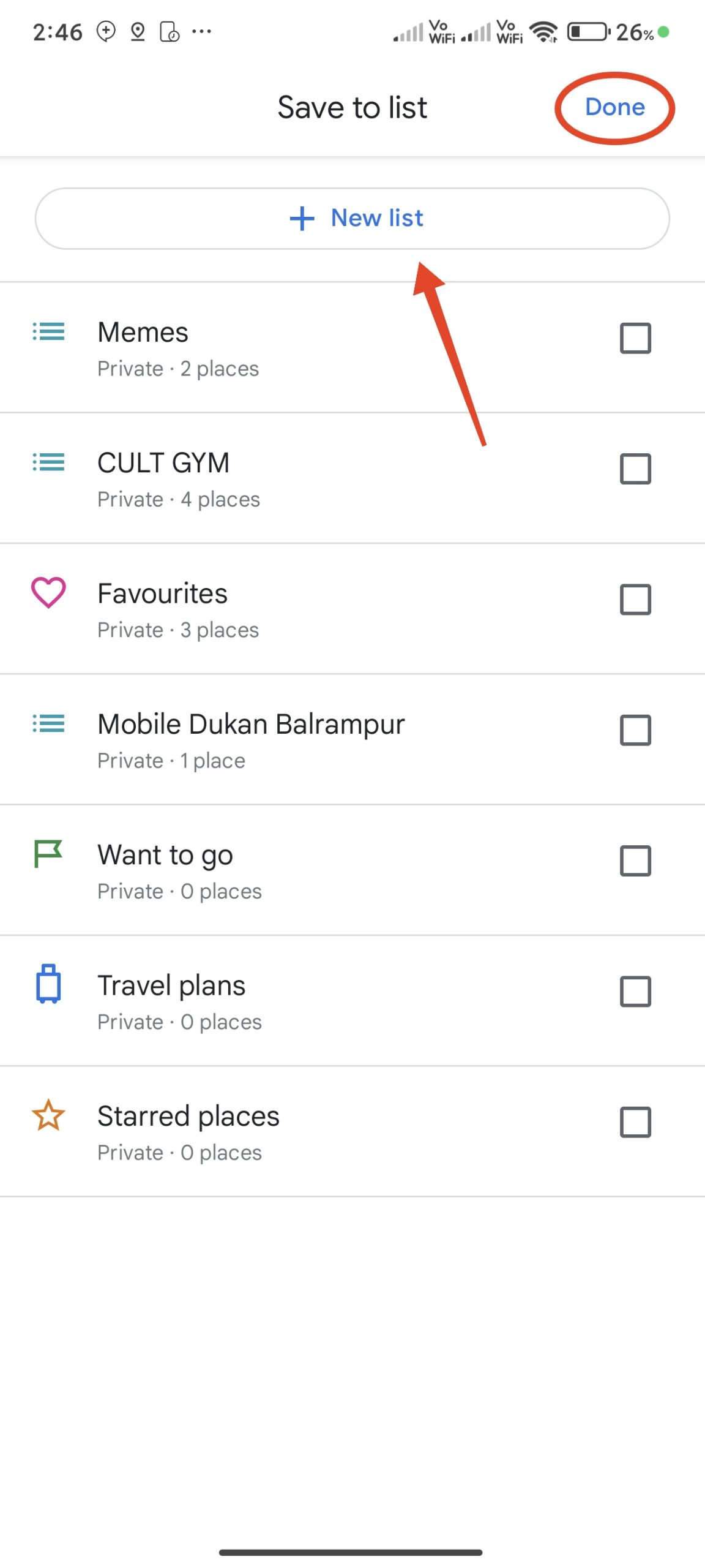 6. Select the list where you want to save your pinned location. You can also create a new list by clicking on New list.