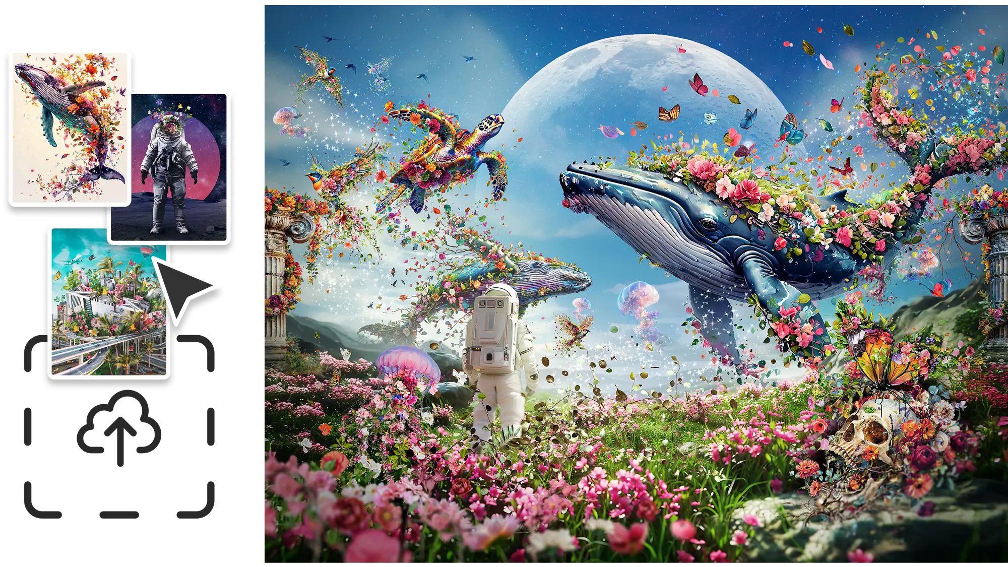 Further AI enhancements in Photoshop include integrating partner models (Google Gemini, Black Forest Labs, Topaz Labs) into Generative Fill and Generative Upscale for more options and high-resolution upscaling. A new Harmonize feature simplifies compositing by automatically matching light and colour.