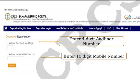 Begin by navigating to the CRCS Sahara Refund Portal at https://mocrefund.crcs.gov.in/.