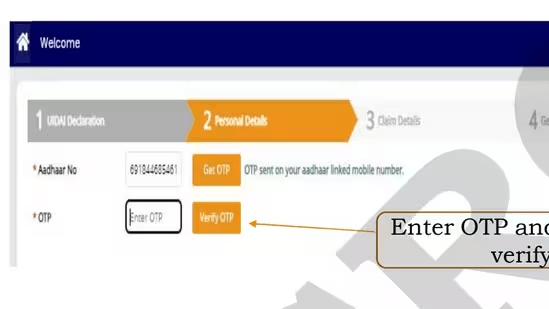 - Input the OTP received on your Aadhaar-linked mobile number.