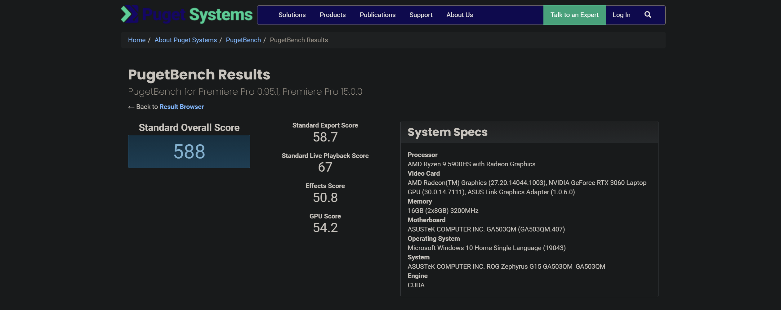 | Asus Zephyrus G15 2021 Benchmark (Plugged-in, Turbo Mode) | Scores |