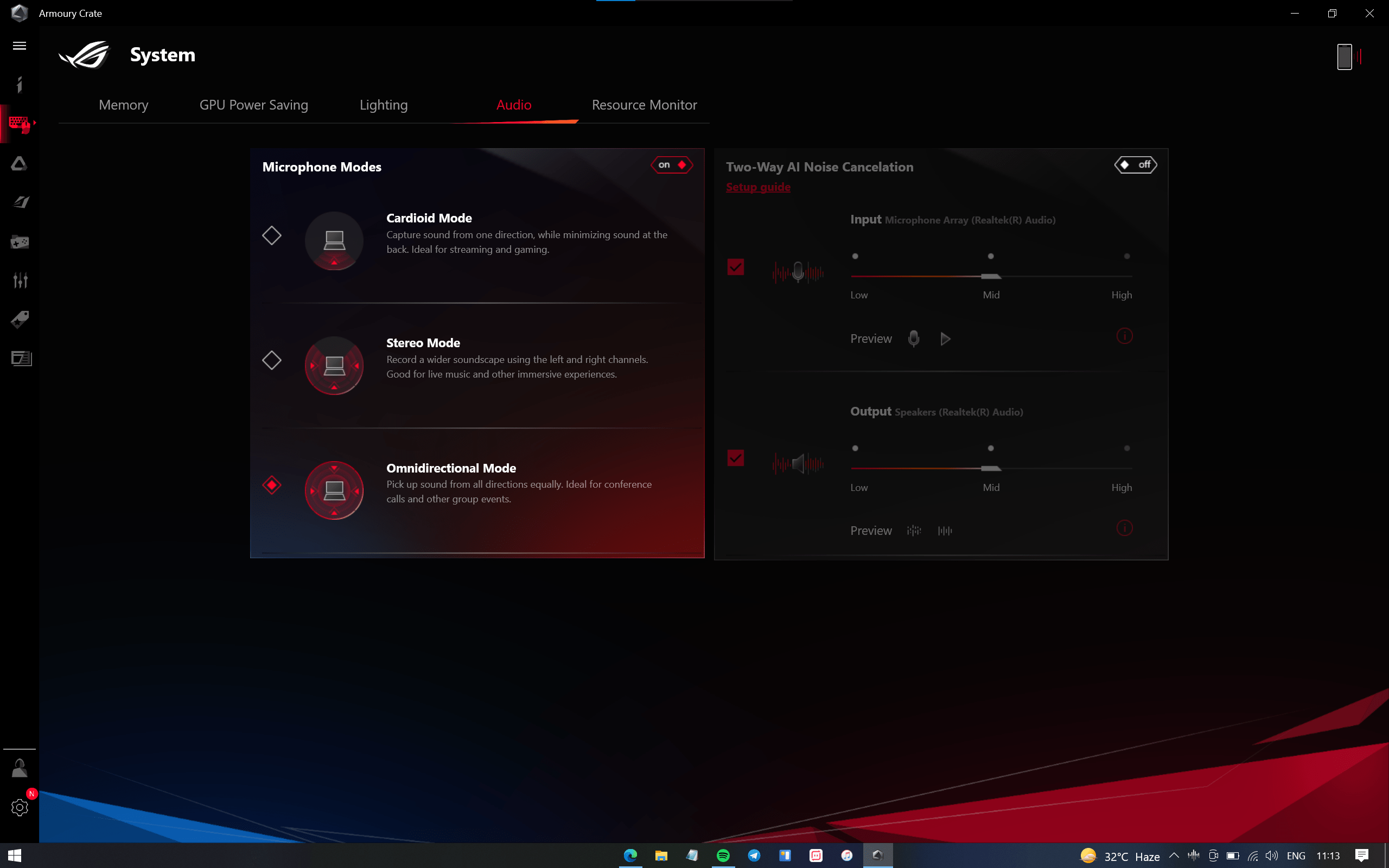 There is a 3.5mm jack on the left port area. I like that it’s easily reachable. The multi-mic system with 2-way AI Noise Cancelation, various cool microphone modes, and noise cancelation choices are also present within the Armoury crate, should you need them. I use them during video calls, which have become part of the WFH routine.