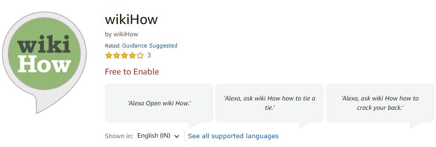 If you expect Alexa to be smart enough to guide you through basic tutorials when needed, you can also enable the Wiki How Skill. Once enabled, you need to phrase your question as “Ask Wiki How how to …..” and Alexa will read you a step-by-step tutorial detailing the process.