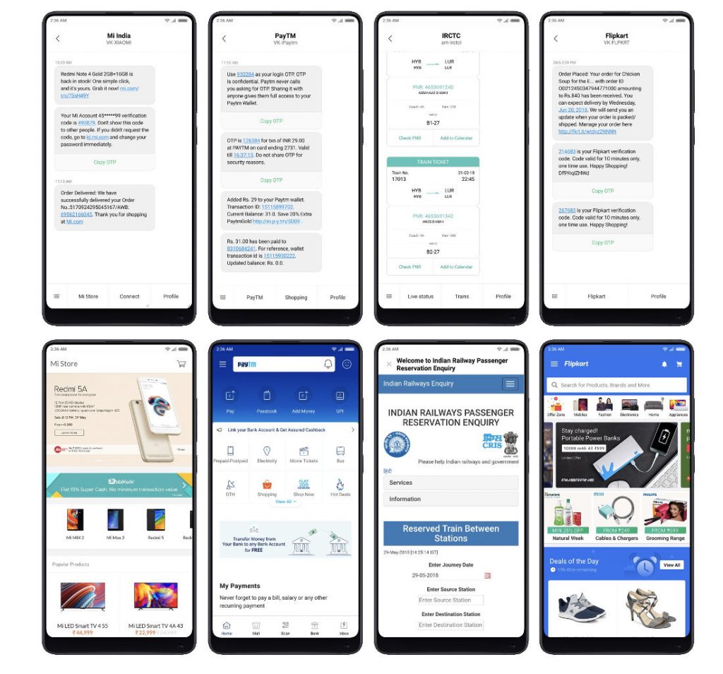 Remember the unique and detailed IRCTC card that shows up in messages with MIUI 9 when you get an IRCTC message? Xiaomi is now extending the same to 100 other apps and services. Incoming messages from these services will show up in a customized manner and will be easier to read and make sense of. Xiaomi will also identify which service is sending you messages and remove the reply button where it doesn’t make sense.