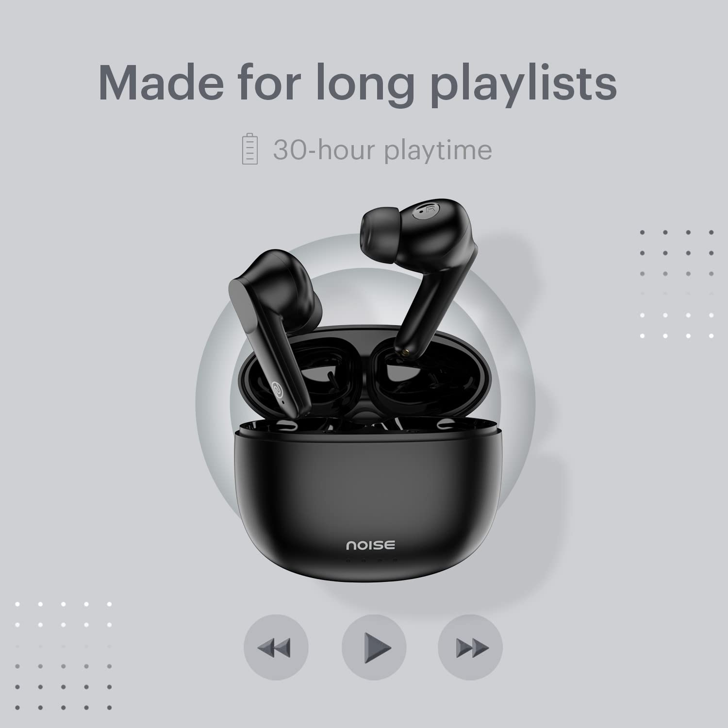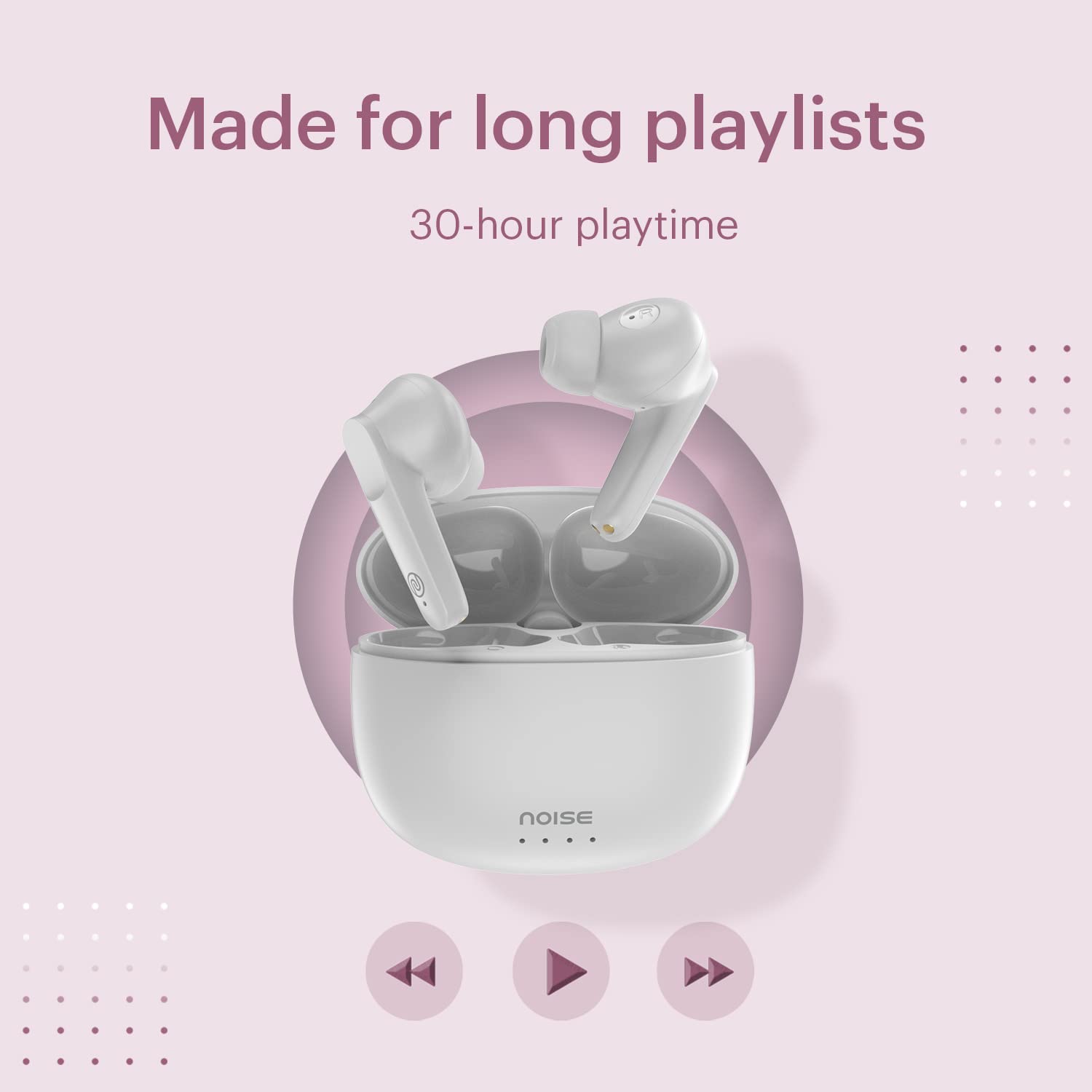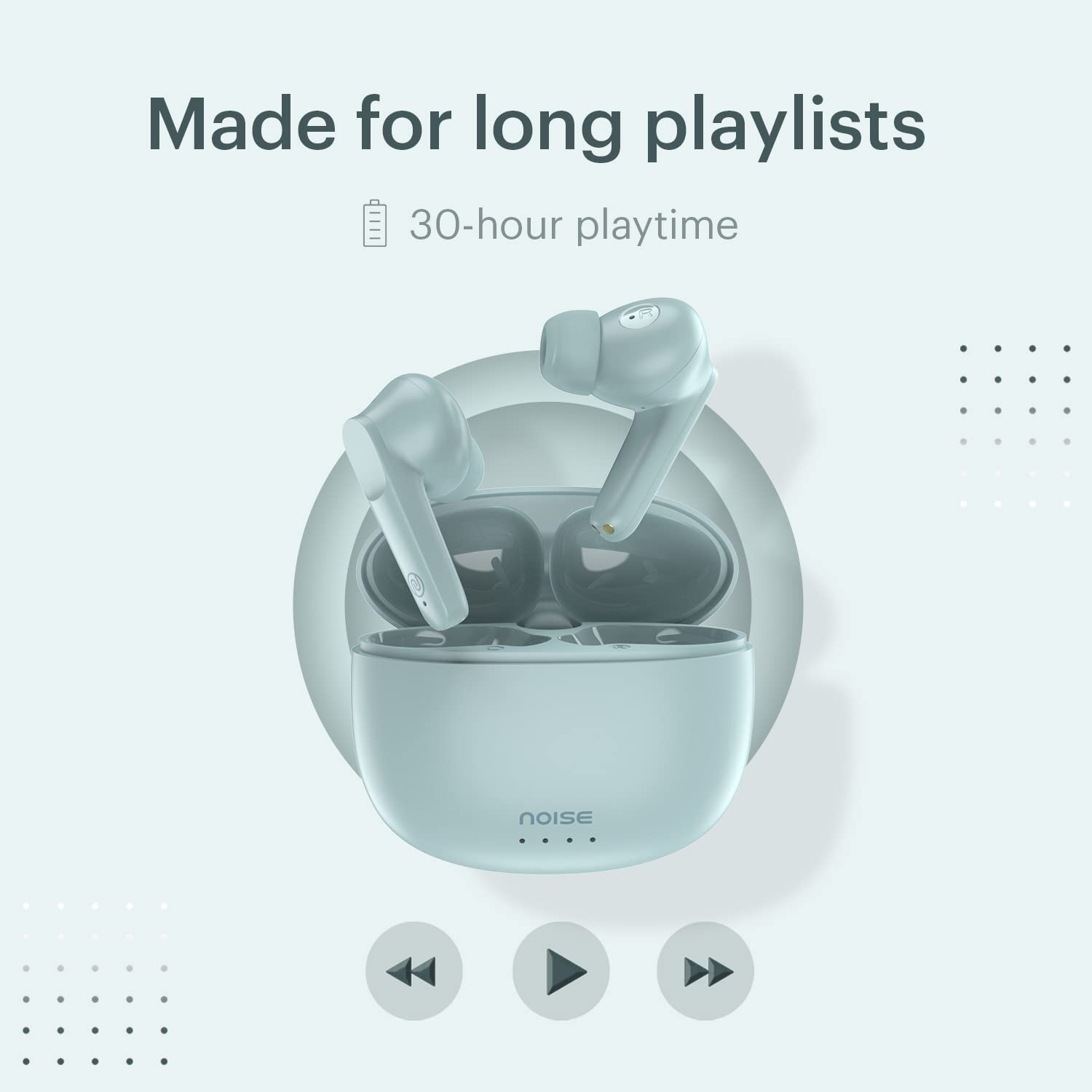 Features- Noise Buds VS104 come with large 13mm drivers for TruBass sound. The Buds have a playback time of up to 30 hours with the case and a quick charge of 10 minutes will give 150 minutes of playtime. The buds support Bluetooth 5.2 connectivity and HyperSync for connectivity. These are IPX4 rated and come in charcoal black, mint green, and snow-white shades.