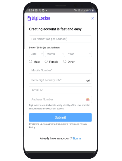 Step 2: Sign up by entering your valid mobile number to create a DigiLocker Account.