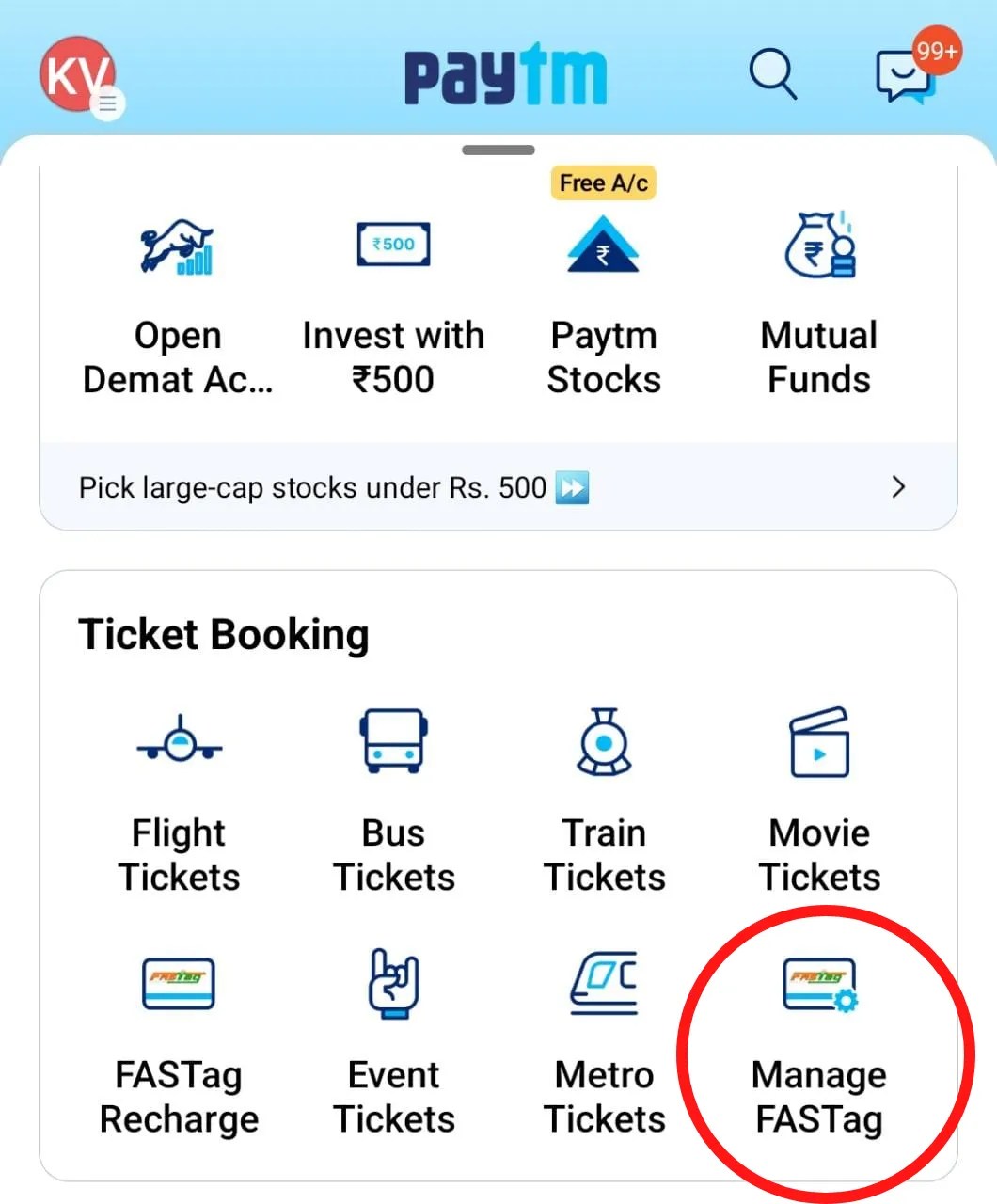 - Tap on the ‘FASTag’ option.