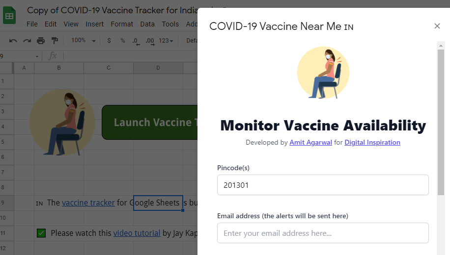 It is a Google Sheet based tracker which can be used to check vaccine slot availability in a particular area and it will send emails as alerts when availability is found. The user has to make a copy of the document and sign in with a valid Google account. You can check here.