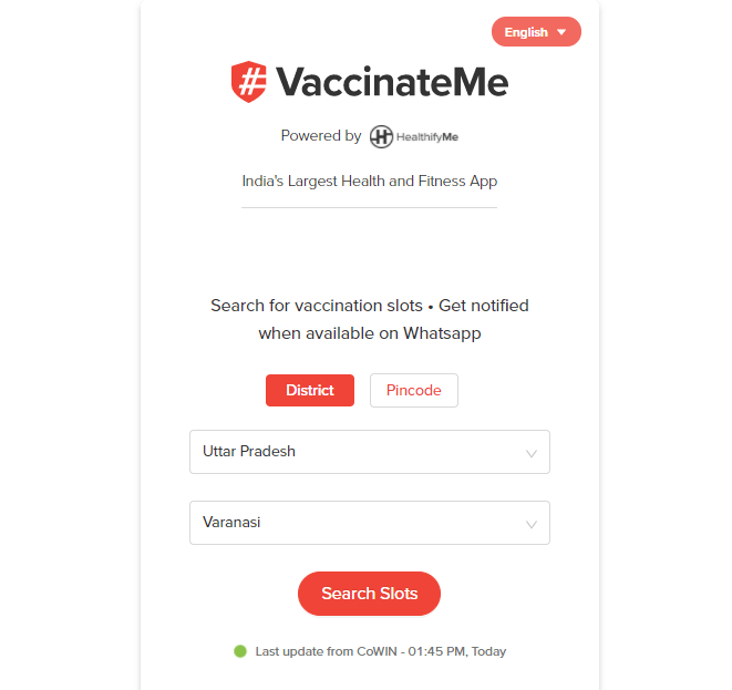 The website is developed by HealthifyMe and it sends alerts of available slots via WhatsApp. The website can be accessed in four different languages including English, Hindi, Marathi, and Kannada. The website is suggested best to be used through mobile phones.