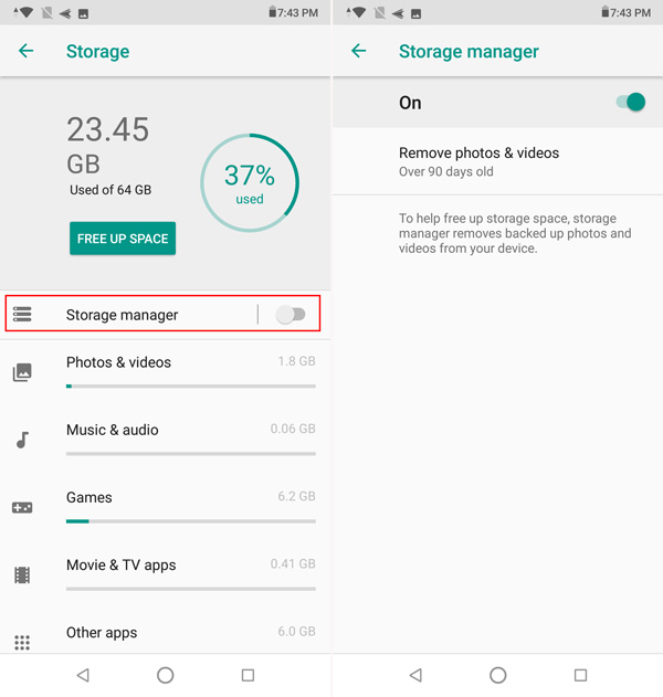 स्टोरेज मैनेजर का इस्तेमाल करने के लिए आपको जाना होगा सबसे पहले सेटिंग्स >> स्टोरेज।