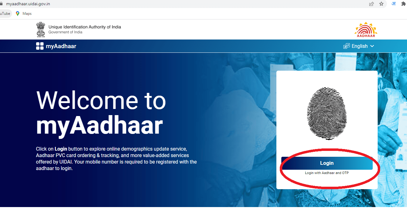 - UIDAI वेबसाइट https://myaadhaar.uidai.gov.in/ पर जाएँ।