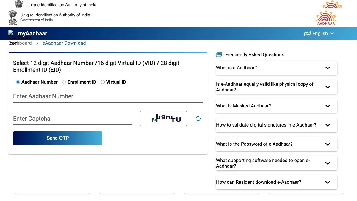 स्टेप 2 – यहाँ आपको अपना आधार नंबर या फिर VID (Virtual ID) दर्ज करना है।
