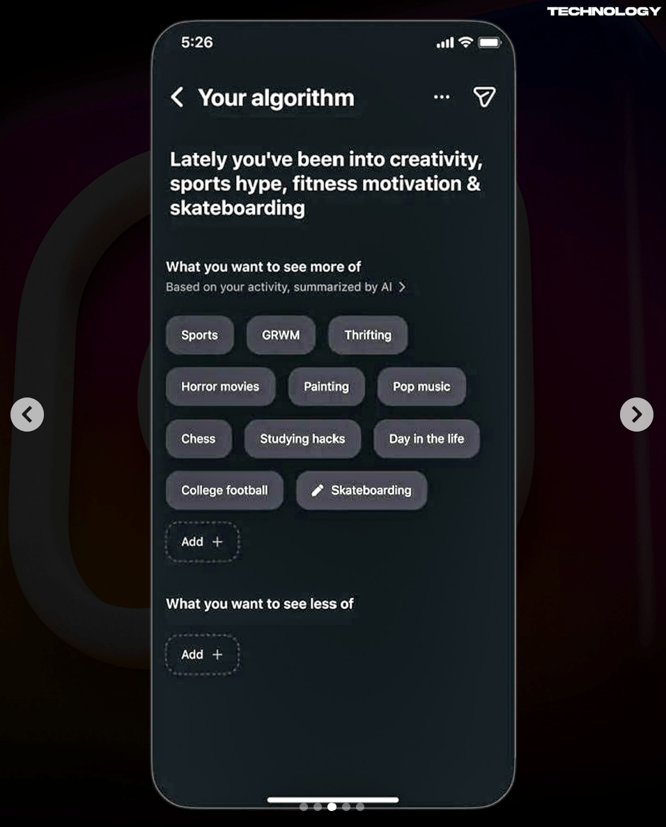 Instagram का नया फीचर “Your Algorithm” यूज़र्स को यह देखने का मौका देता है कि प्लेटफॉर्म उन्हें किन टॉपिक्स में ज़्यादा दिलचस्प मान रहा है। इतना ही नहीं, अब आप चाहें तो इन preferences को बदल भी सकते हैं, ताकि Reels फीड आपके बदलते इंटरेस्ट के साथ अपडेट होता रहे।