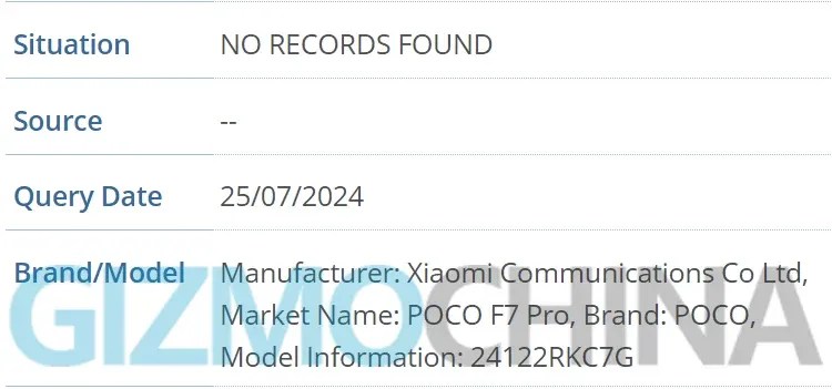 POCO F7 Pro IMEI डेटाबेस लिस्टिंग की जानकारी
