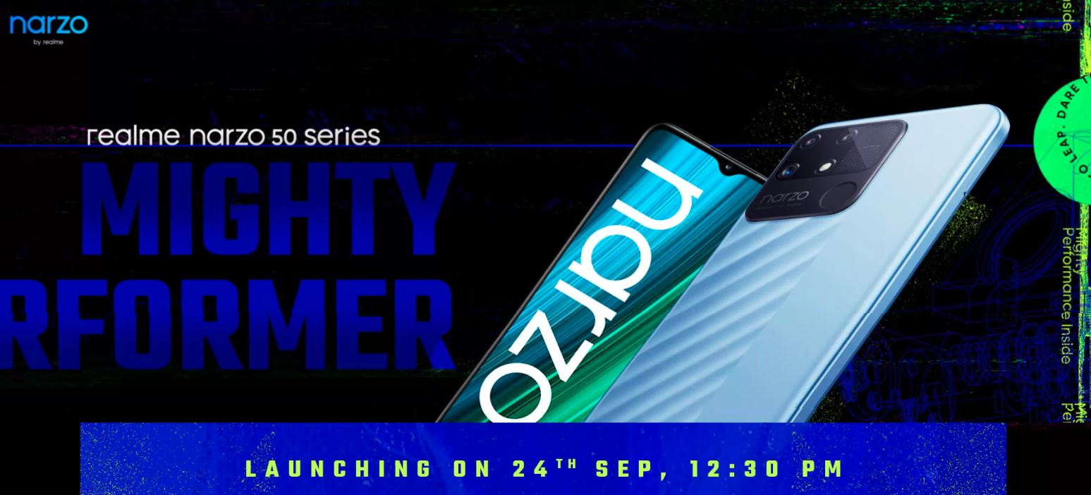 Realme एक बार फिर अपने अगले इवेंट के साथ भारत में धूम मचाने को तैयार है। हाल ही में ब्रैंड ने अपना लैपटॉप Realme Book Slim भारत में लॉन्च किया, फ्लैगशिप फ़ोन Realme GT 5G (रिव्यु) भी अभी कुछ ही दिनों पहले आया है। और अब कंपनी एंट्री-लेवल Narzo 50 सीरीज़ को भारत में लॉन्च करने की पूरी तैयारी कर चुकी है। Realme Narzo सीरीज़ को भारत में 24 सितम्बर को लॉन्च किया जायेगा और ये मीडिया इनवाइट के साथ कंपनी ने ज़ाहिर भी कर दिया है। इस सीरीज़ में कंपनी तीन स्मार्टफोन – Realme Narzo 50, 50 Pro और Narzo 50A लॉन्च कर सकती है। लेकिन सिर्फ ये स्मार्टफोन सीरीज़ ही नहीं है, बल्कि इसी के साथ कंपनी कुछ और प्रोडक्ट भी लॉन्च करने वाली है जिनमें Realme Band 2 और Realme Smart TV Neo 32-इंच शामिल हैं। आइये जानते हैं कि कौन से डिवाइस कंपनी लेकर आ रही है और इनके फीचर क्या हैं।