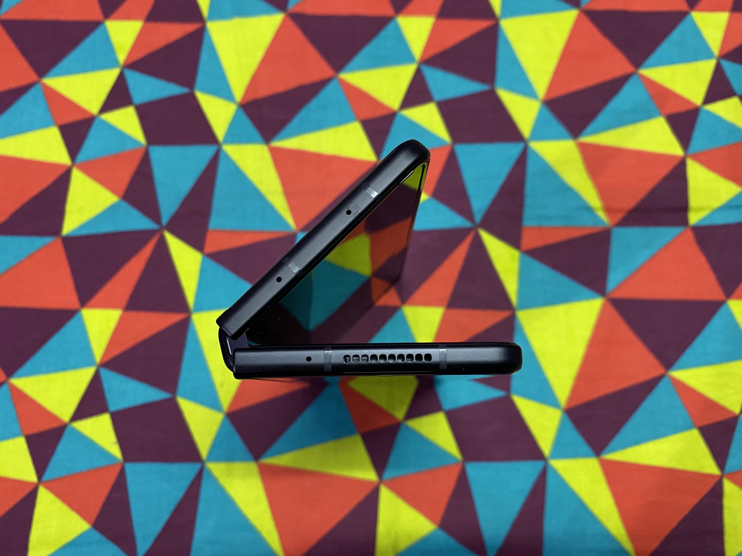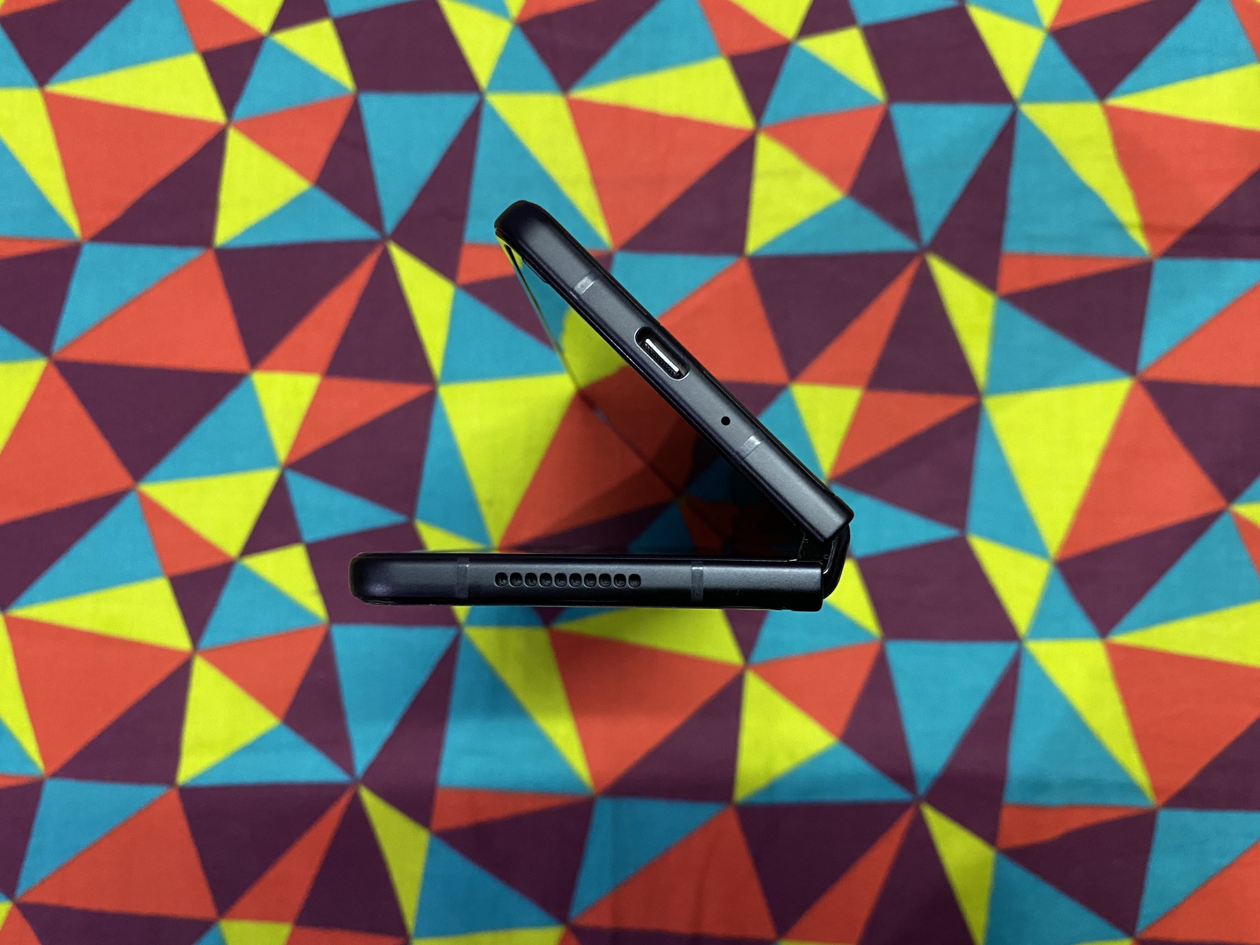नीचे और ऊपर की तरफ, दो स्टीरियो स्पीकर हैं। इसके अलावा USB Type-C (3.2) पोर्ट और माइक भी इसमें शामिल हैं। इसके अलावा पूरे स्ट्रक्चर में कोई भी चिंताजनक गैप नहीं है और अगर हैं भी तो उन्हें अच्छी तरह रबर और ग्लू के साथ बंद किया गया है। इसी तरह के समाधान के साथ कंपनी ने यहां IPX8 रेटिंग के साथ वॉटर प्रूफिंग को और पक्का करने का प्रयत्न किया है। और इस तरह के डिवाइस में वॉटर प्रूफिंग का सर्टिफिकेशन देना अपने आप में बहुत बड़ी बात है, जिसमें इस तरह के हिलने-डुलने वाले कॉम्पोनेन्ट लगाए गए हों। लेकिन यही सब इस फ़ोन की बाद में रिपेयर को और कठिन भी बना सकता है। तो अगर कभी आगे ज़रुरत पड़े तो हम यही सलाह देंगे कि इसे ठीक कराने के लिए पहली सलाह Samsung के सपोर्ट सेंटर से ही लें।