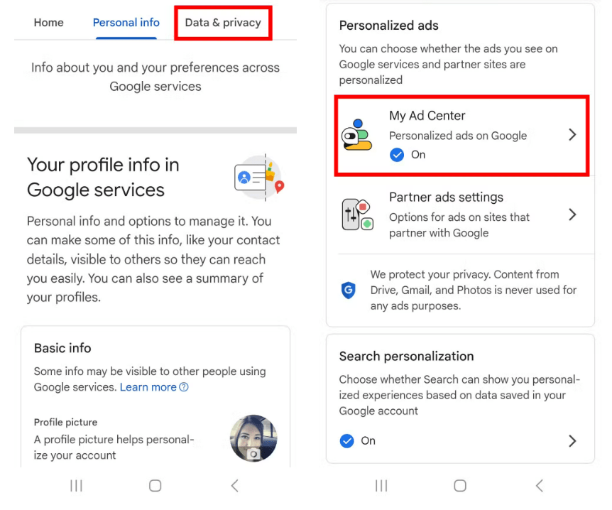 - Personalized ads हमेशा off रखें