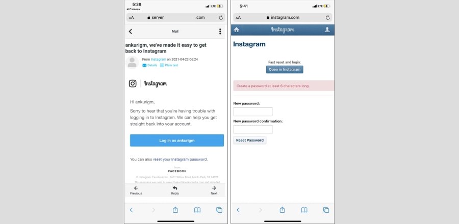 Resetting Instagram password