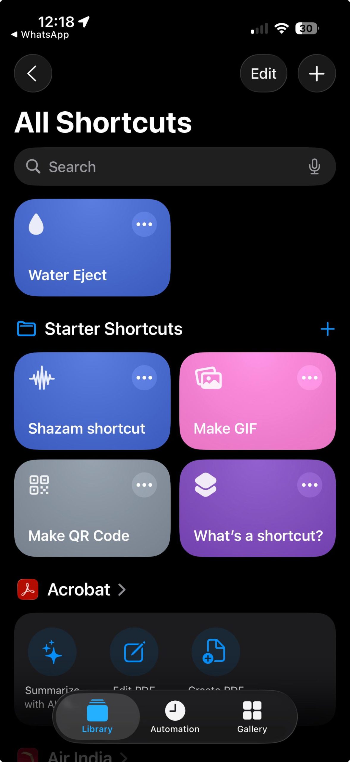 - You’ll now see the shortcut in your Shortcuts Library under the name Water Eject.