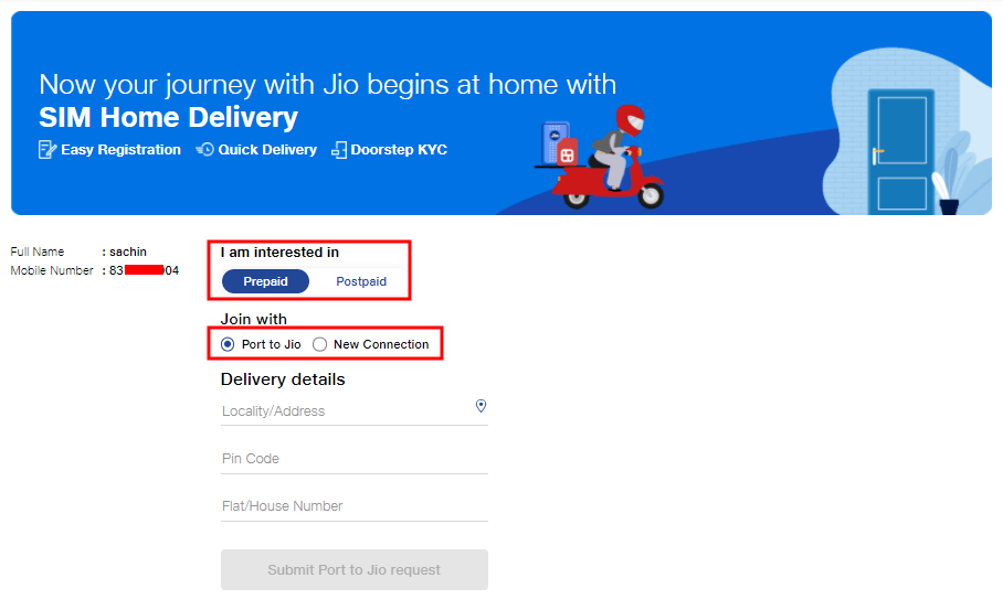 - A new page will appear with different options. Select the option of ‘I am interested in Prepaid’ and tap on the Port to Jio option.