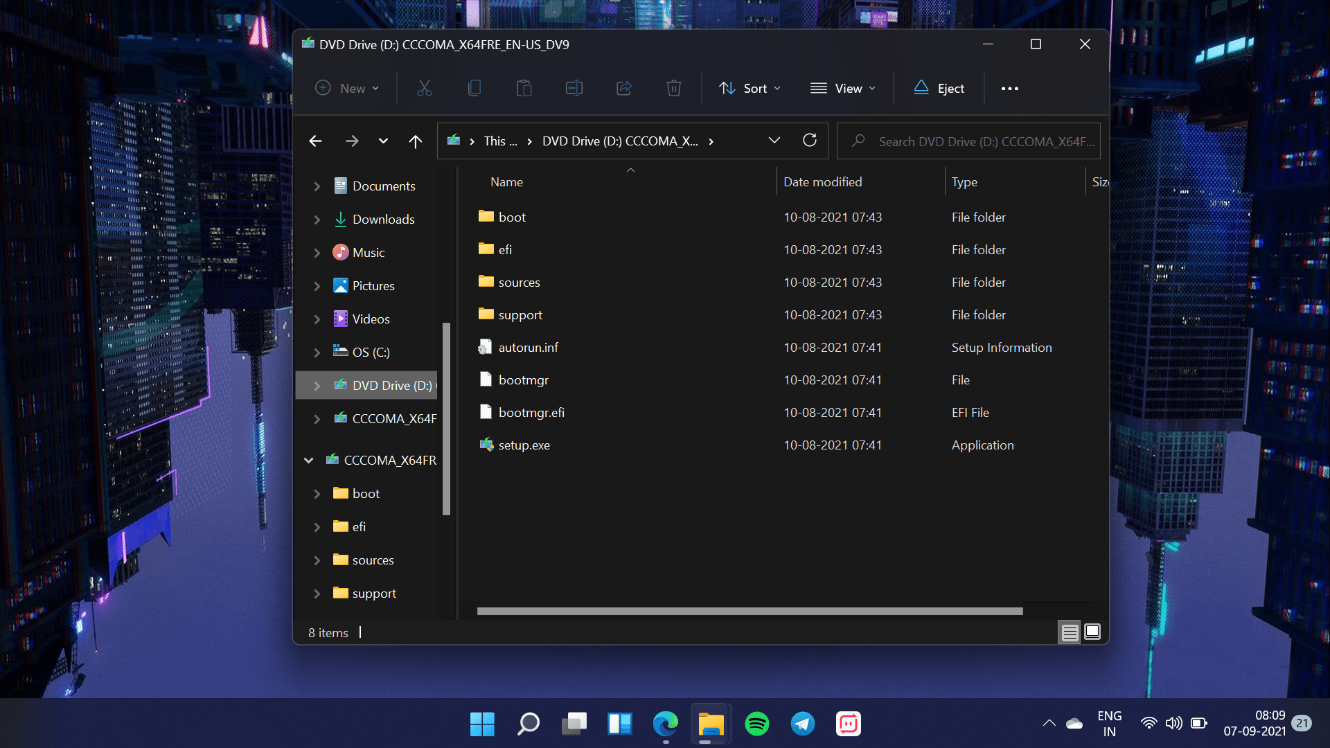 - Now, double-click the Windows 11 ISO file and a new drive would be mounted on the Navigation pane of Windows Explorer.