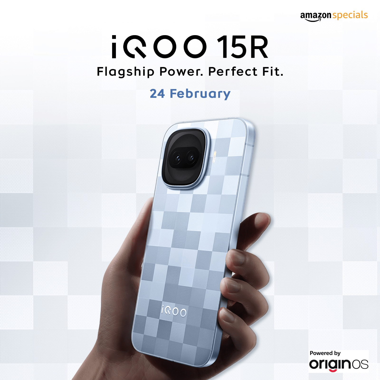The announcement image shows the iQOO 15R in a tiled pattern finish that has not been seen on the China variant. This design appears to be exclusive to India. The textured, pixel-style rear panel sets it apart visually from the standard color options offered in China.