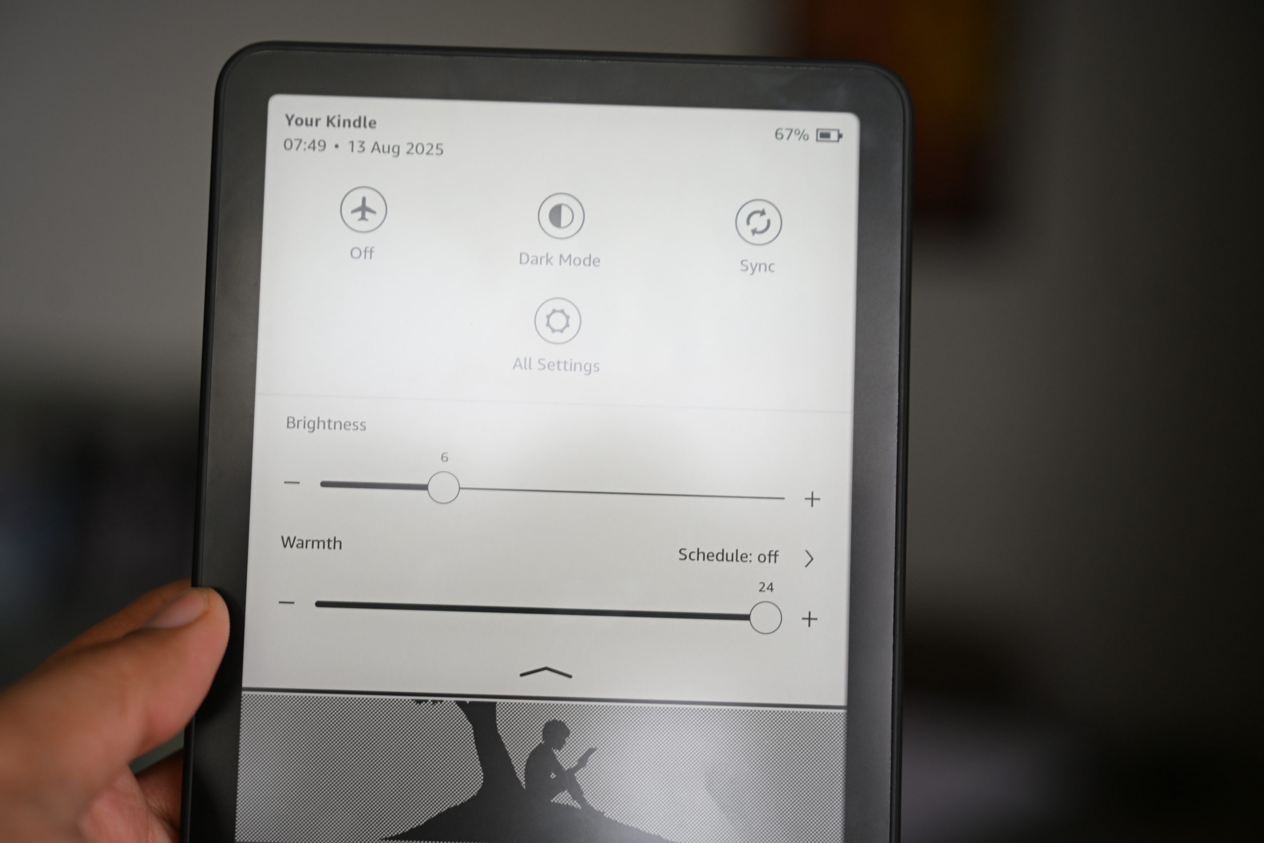 The adjustable warm light now has a fine-tuned 0–24 amber slider, letting you shift from a cool white tone to a warm, paper-like yellow that’s easier on the eyes for long sessions or night reading. Outdoor visibility is excellent, even at lower brightness levels, making it just as comfortable to read in direct sunlight as in bed with the lights off.