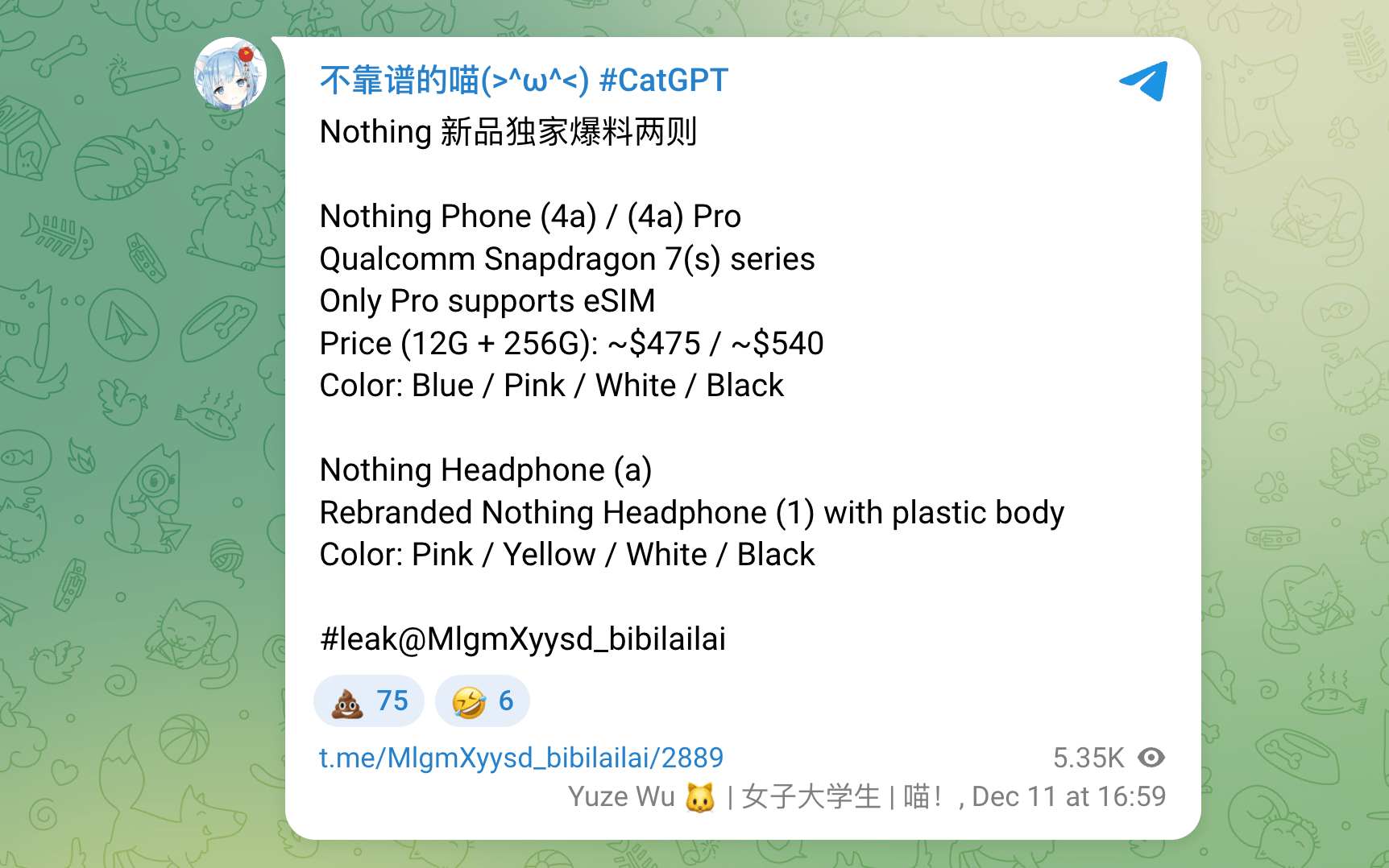 The London-based company is also working on an A-series headphone, likely joining the Headphone (1) launched in July. The device could be a rebadged version of the current model, but with a plastic chassis (as mentioned in the Telegram post). Furthermore, the headphones could also be available in four colors: black, white, yellow, and pink.