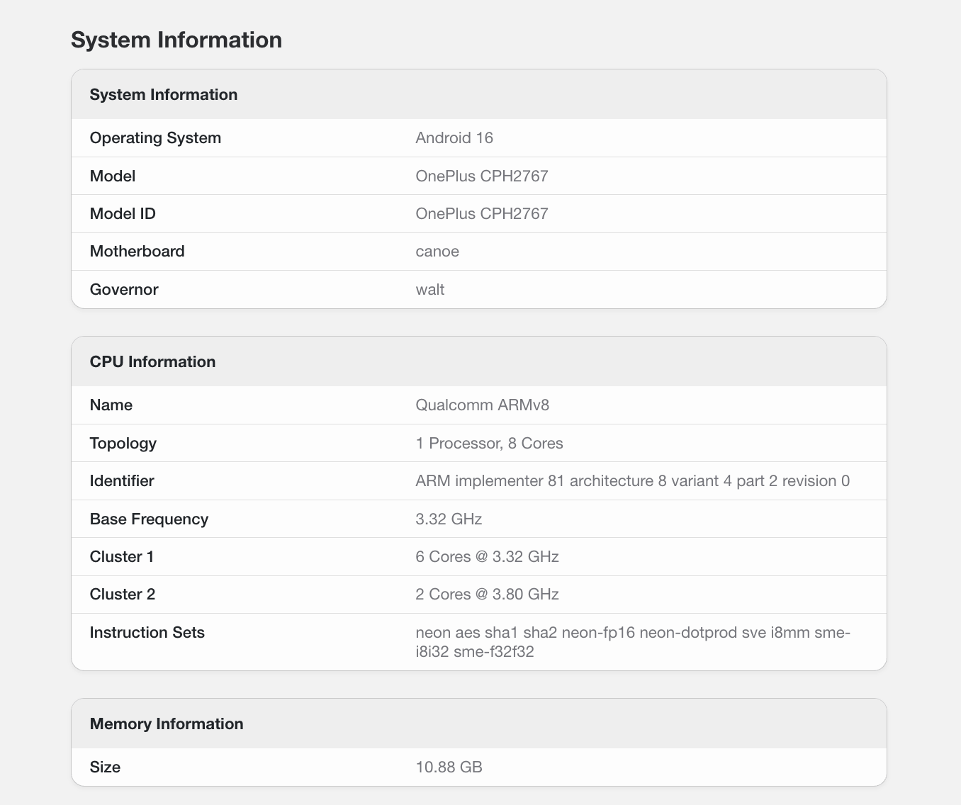 Among the other details revealed by the Geekbench listing are 10.88GB of RAM (which could be advertised as 12GB at launch), and the operating system is listed as Android 16, suggesting the device could run OxygenOS 16 out of the box.