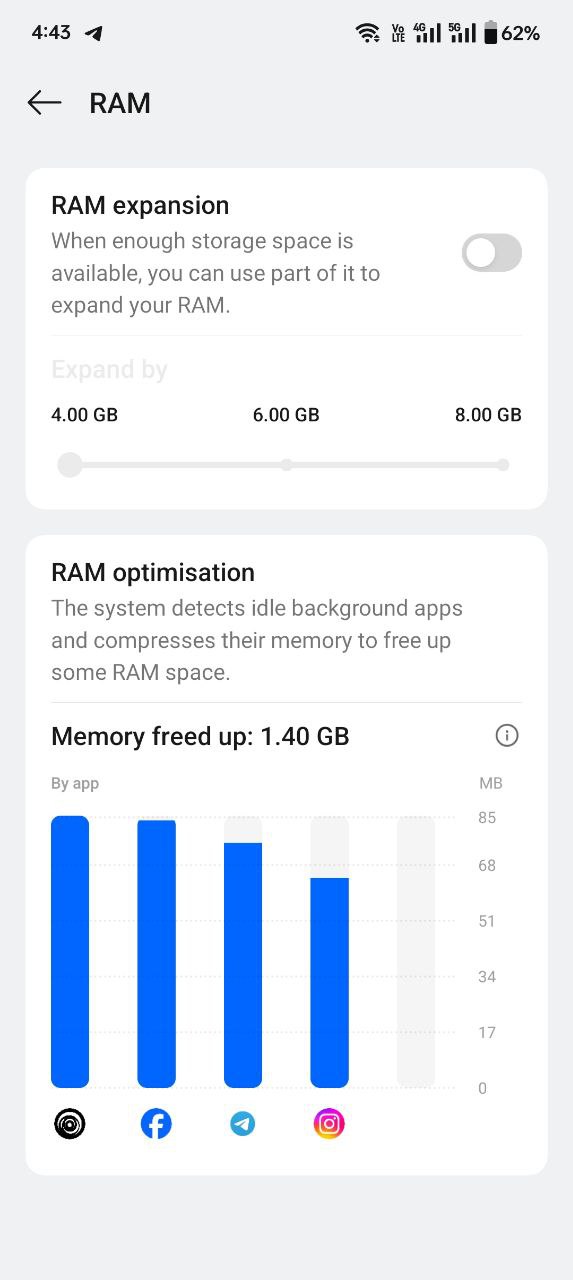 4. RAM optimization: The system automatically compresses the memory usage of background apps to free up RAM for other apps or games.