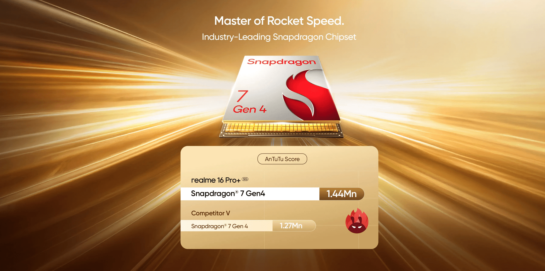 - The standard realme 16 Pro offers a similar experience at a lower price point, replacing the Snapdragon 7 Gen 4 in the Plus model with a MediaTek Dimensity 7300-Max chipset.