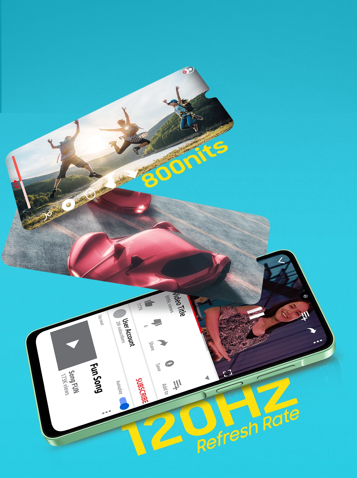 - Display: 6.7-inch HD+ LCD, 120Hz refresh rate, with 800 nits peak brightness. (Yes, there’s still a waterdrop notch).