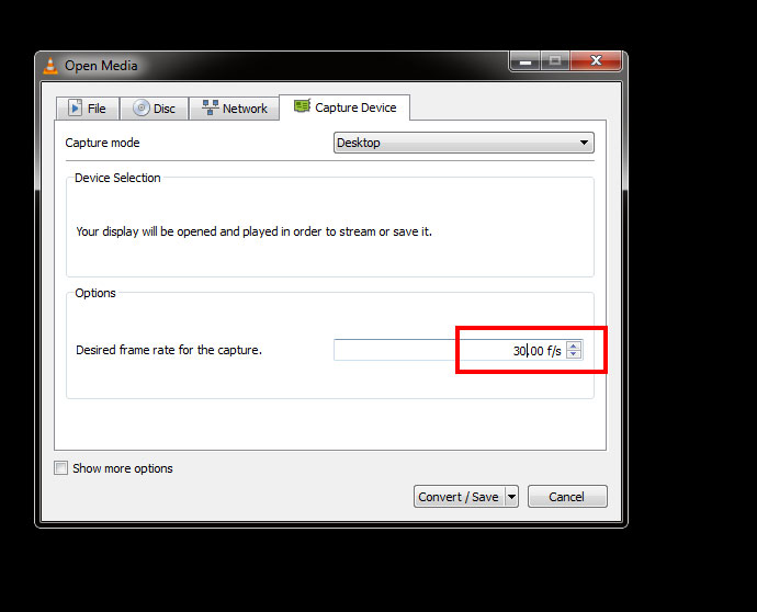 - Head over to Capture Device option and change the Capture mode from the drop-down box to Desktop.