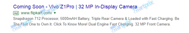 We already know that Vivo will soon launch online exclusive Z1 Pro in India as the teaser page of the handset is already live on Flipkart. We also spotted a Google Ad put out by the e-commerce giant that confirms quite a few Vivo Z1 Pro key specs including chipset, camera, battery, and more.