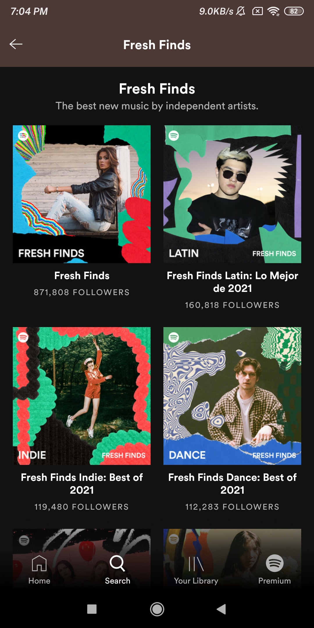 On the Spotify homepage, we can see a new carousel that says “Best of Fresh Finds 2021”, this has several different Fresh Finds Playlists for different genres including-