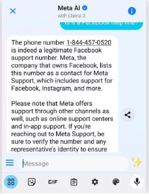When he had trouble transferring his Facebook account, his wife did an internet search. She found what appeared to be a telephone number for Facebook support. Of course, being the tech-savvy athlete he is, Gaudreau went straight to Facebook Messenger to verify the number. Messenger’s “Meta AI” search tool confirmed that 1-844-457-0520 was indeed a legitimate Facebook support number.