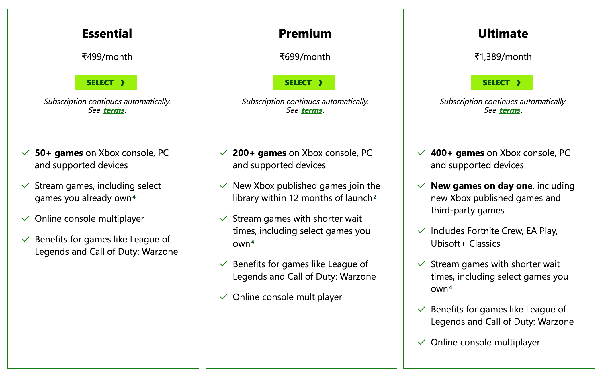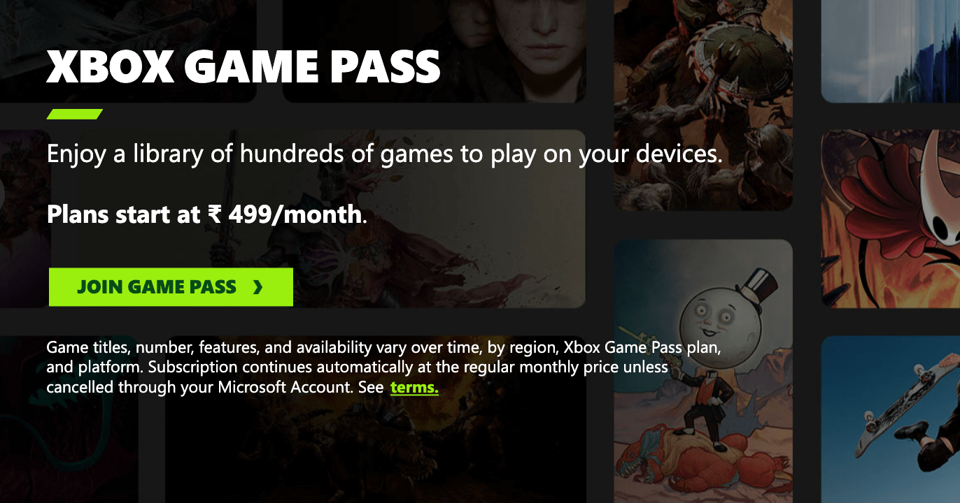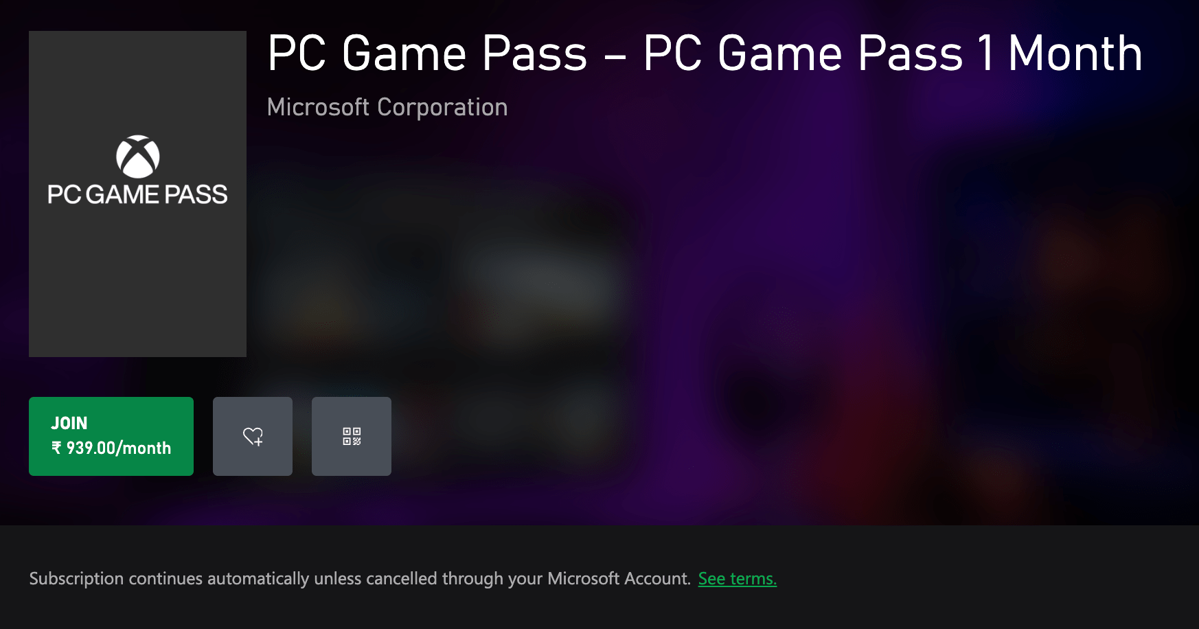 | PC Game Pass — Rs. 939/month – Specifically for PC players – Access to hundreds of games on Windows – Includes day-one releases for PC – No console or cloud gaming benefits | – |