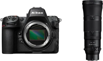 Nikon Z8 Mirrorless Camera with 180-600mm f/5.6-6.3 Lens is a 45.7 MP Mirrorless Camera. It has a Full Frame Stacked CMOS sensor. It can record up to 8K videos. It features 180-600mm focal length, f/5.6-6.3 aperture. Notable features include Wi-Fi, Bluetooth, Viewfinder, Image Stabilization and Touchscreen.