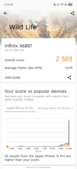 | 3DMark Score | 851 (Wild Life Extreme) (5.1 FPS) |