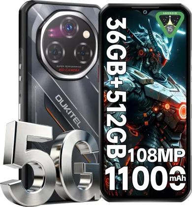Oukitel WP62 5G (8GB RAM + 256GB) is a 5G Android 15 Smartphone powered by Mediatek 7025 with 8 GB RAM and 256 GB storage. It has a 6.6 inches IPS display. It features a 108 MP + 8 MP + 2 MP Triple rear camera and a 32 MP front camera. It packs a 11000 mAh Battery with 33W Fast Charging. Notable features include NFC, IP68 Rating, Expandable Storage, USB on-the-go and Fingerprint Sensor.